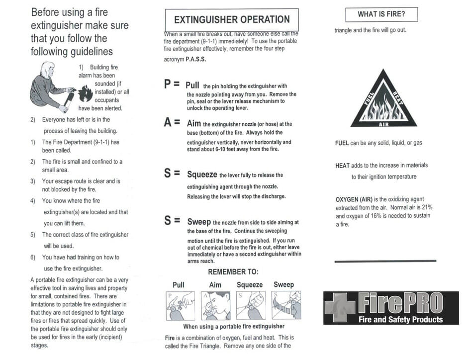Fire extinguishers from various manufacturers operate in different ways and there is no time to read directions during an emergency. There must be oxygen to sustain combustion, heat to raise the material to its ignition temperature, fuel to support the combustion and a chemical reaction between the other three elements. …where the employer has provided portable fire extinguishers for employee use in the workplace, the employer shall also provide an educational program to familiarize employees with the general principles of fire extinguisher use and the hazards involved with. 9 hours ago the purpose of the fire prevention plan (fpp) is to eliminate the causes of fire, prevent loss of life and property by fire, and to comply with the occupational safety and health administration's (osha) standard on fire prevention, 29 cfr 1910.39. Fire extinguisher training by ryan beckwith. The extinguisher and hose should be free of any visible damage. Operational safety rules for fire extinguisher use are: With this online training course, employees will learn how to assess the situation and decide the best course of action — evacuate and report the fire or put out the fire themselves with an extinguisher. Received training, and keep it in your personal files. On even numbered years this training will be conducted by a member of the local fire department (where possible) and will include live fire hands on use of the extinguisher. Determining if the fire extinguisher is ready to use is done on a monthly basis and only takes a few minutes.\爀屲check to see i\൦ the pfe is in its designated place with no obstructions and with its label facing outward. Annual fire extinguisher education and training is required by osha (29 cfr 1910.157 (g)) to familiarize employees with the general principles of fire extinguisher use and the hazards involved with incipient stage fire fighting. Portable fire extinguishers apply an extinguishing agent that will either: